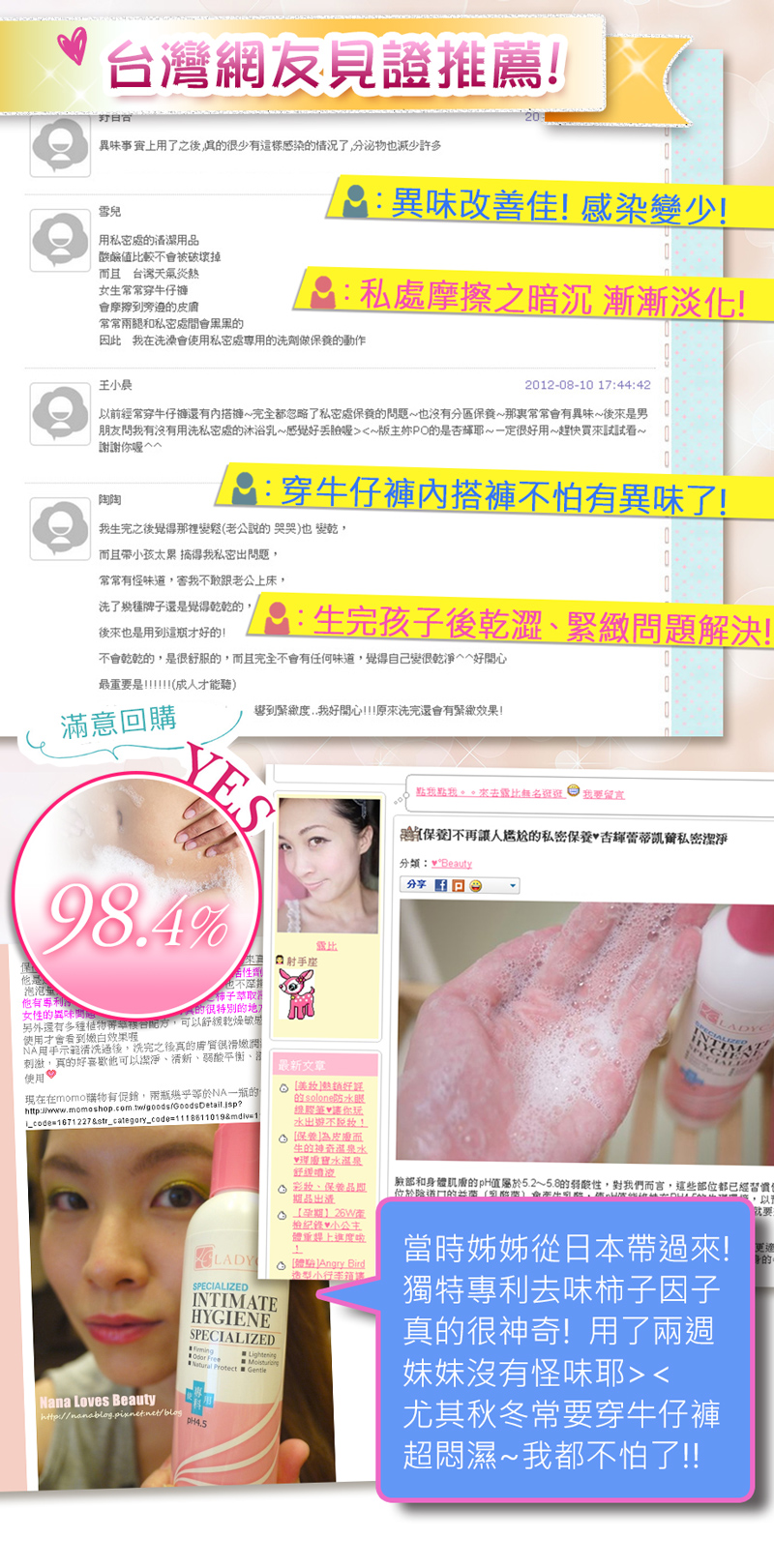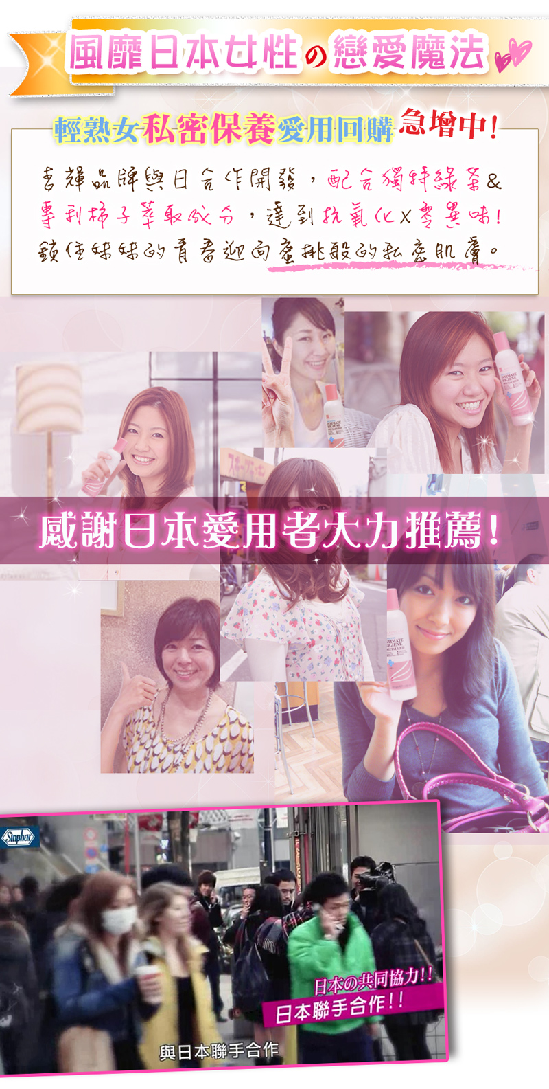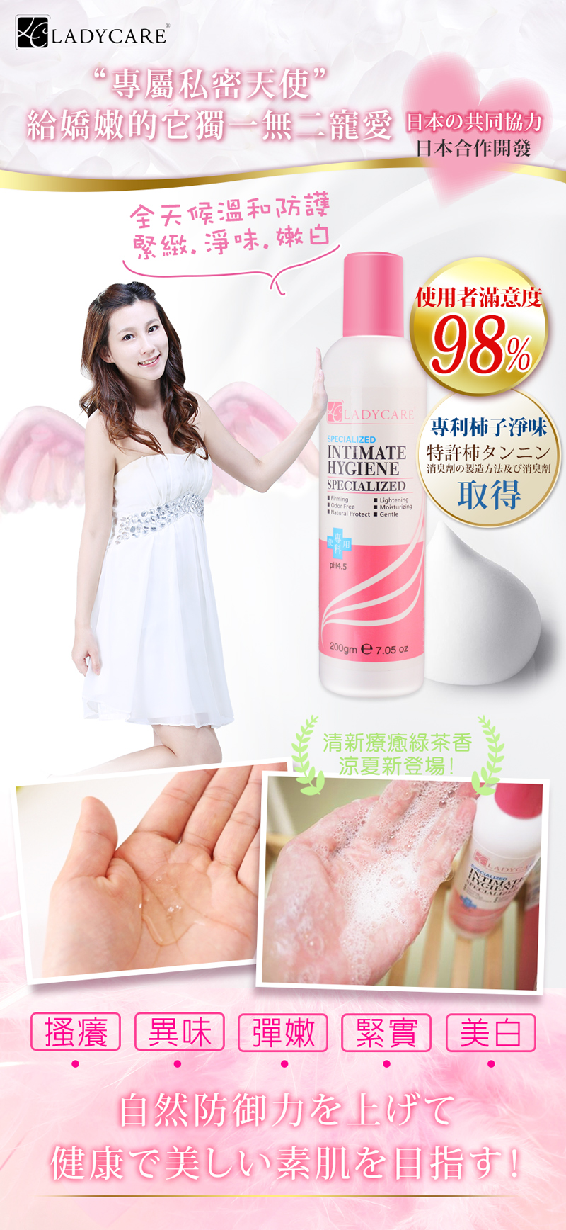 ◆私密潔淨液主要成分:Persimmon Extract(柿果汁發酵產物萃取)/Lactic Acid(乳酸)/ Chamomilla Recutita/(Matricaria) Flower Extract(洋甘菊萃取液)/Green Tea Extracts(綠茶萃取液)/Cocamidopropyl Betaine/(椰油醯胺丙基甜菜鹼)…等
