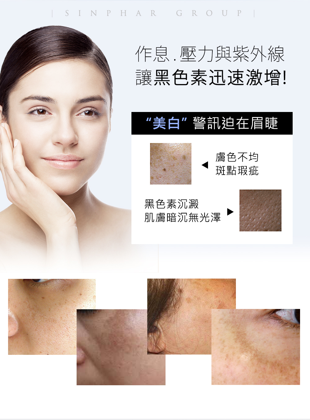 Tranexamic acid (傳明酸):衛生署核可的美白成份,防止黑色素聚集有效阻斷形成黑色素。